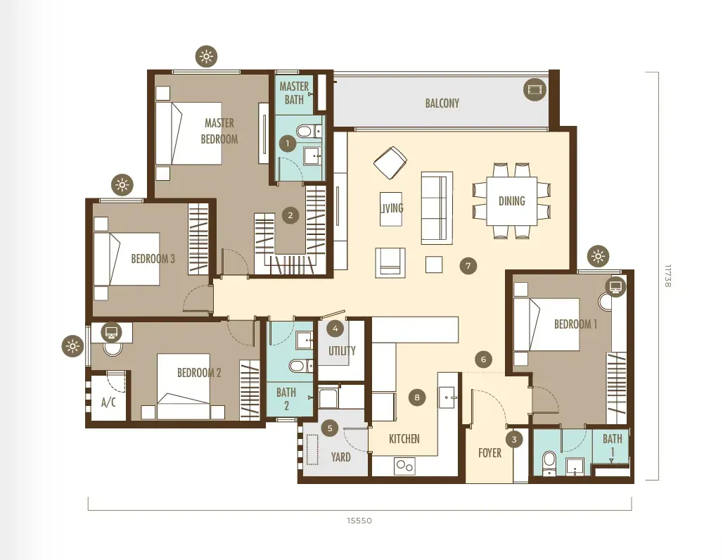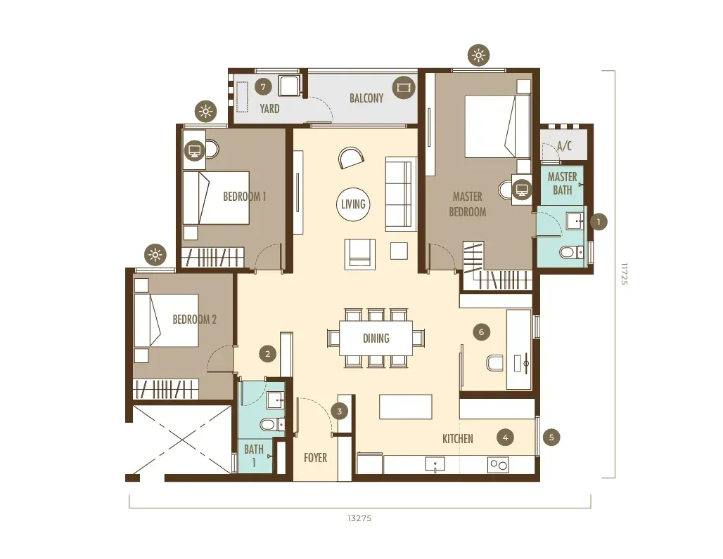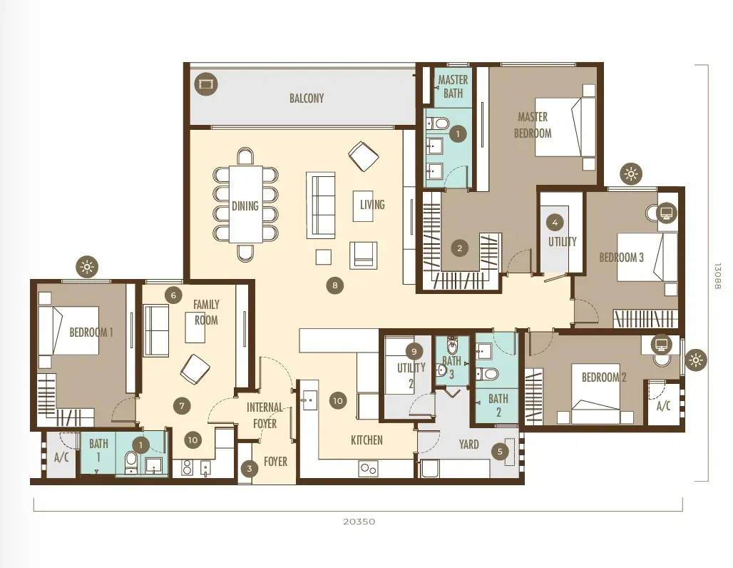 Manage the finer aspects of daily living effortlessly using Smart Home System, conveniently at your fingertips. Simplify your lifestyle in our semi-furnished residences by taking charge of your home through a single mobile application, enabling control over digital door locks, lighting, fans, and air conditioning.